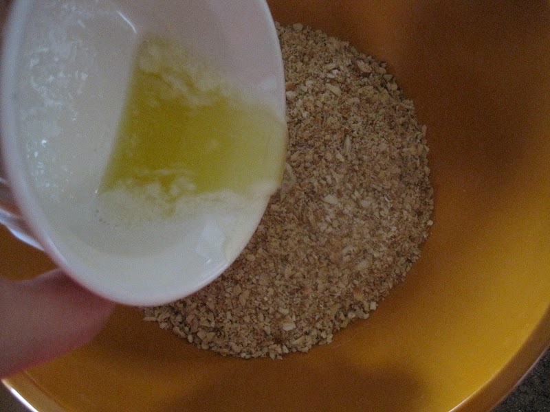 Start by making the crust. I found this recipe and was told via the web that it is close to the recipe for the crust used at the Cheesecake Factory. The recipe also called for walnuts--I'm allergic. Well, I think I am. I get this funny feeling behind my ears that forces me to act like Will Smith in Hitch. Yep, attractive. No walnuts for us. But I did add almonds--forgot to take a pic. (Insert almond picture here)Oh and there is Nilla Wafers. Haven't had these in years--totally underrated. Sad that we only used 3/4 of a cup. I totally didn't spread the carmel sauce between two of these to make a Nilla Carmel Sandwich. Riiight.
